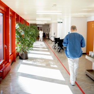 Un lustre avec 8 Wetro 1.0 accompagne les déplacements dans l'escalier principal, guidant les personnes d'un niveau à l'autre avec élégance.