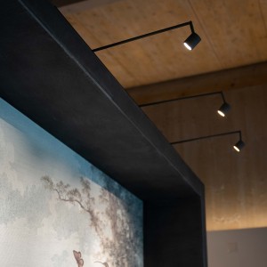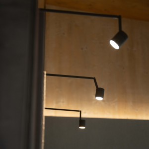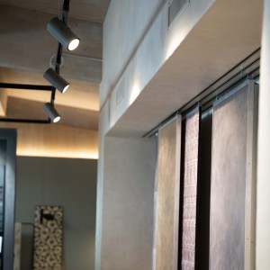 Le système d’éclairage est contrôlé par Casambi, permettant de moduler l’intensité lumineuse, de créer des ambiances et de programmer des minuteries selon les horaires du magasin.