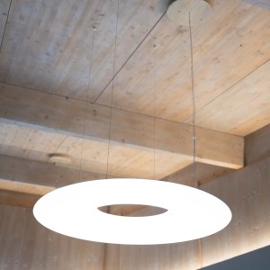 L'EMS Le Glarier a identifié un besoin d'amélioration de l'éclairage dans la cafétéria, un espace de rencontre où les patients doivent se sentir à l'aise. Pour créer une atmosphère accueillante, nous avons opté pour de grandes suspensions qui offrent une distribution lumineuse à 360°. Leur diffuseur en polyéthylène permet un éclairage doux et homogène, tout en garantissant un flux lumineux important sans éblouir.