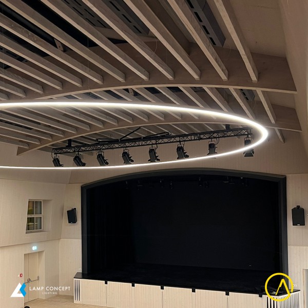 Dans cette habitation privée, nous avons créé des lignes de lumière Lampline dissimulées derrière les boiseries pour offrir un éclairage discret, tout en mettant en valeur les structures du bâtiment.